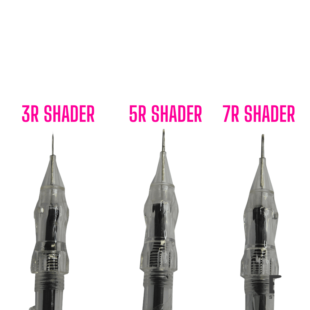 Disposable 3R (3 pins) shader needle holds 0.25ml of inkpigment, aligned in the same length with adjustable depth control. Perfectly fits in the Eyebrow Ink Digital Machine handle piece.