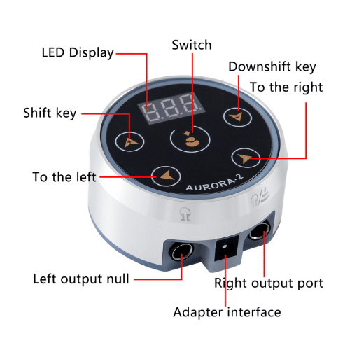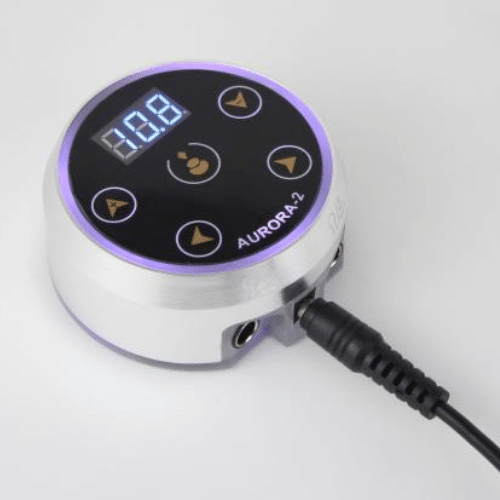 The Aurora 2 features a backlit digital display, touchscreen, and 6-stage LED colour control that indicates voltage range. ️ The adjustable voltage is between 1.5-16 volts by 0.1v increments with precision-regulated voltage output so you can fine-tune your machine with unparalleled accuracy. Dual output so cosmetic tattooists can seamlessly switch between liner and shader tattoo machines. Compatible with all coil and rotary tattoo machines.